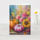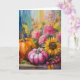 Uma pintura abstrato vibrante e moderna que mostra um arranjo lúdico de abóboras, girassóis e outras folhagens de outono. Matizes ricas do outono como laranja queimado, vermelhos profundos, pinks e amarelos ouros se misturam com pinceladas macios e tons negros de cor. O estilo abstrato adiciona um talento contemporâneo ao tema tradicional da colheita de outono, capturando o calor e a beleza da estação em uma composição artística viva.