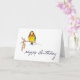 Pintura aquosa de um pássaro num galho com Feliz Aniversário manuscrito à mão.