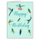 Os beija-flores das Américas tropicais fazem o cartão de aniversário com a mensagem de dentro: "Desejando a você um dia cheio de felicidade e um ano cheio de alegria. Feliz aniversário!"