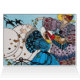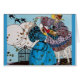Ilustração de alta moda Vibrante e elegante Deco de Arte Francesa.design de monograma, com belas senhoras jogando comida às andorinhas na primavera, preto branco, amarelo, azul-aqua, verde e Legal, moderno e artístico com uma pedra-sapo azul-3d.