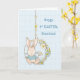 Este lindo coelho está balançando sobre uma coroa de flores de primavera. Tão fofo dar a seu neto a sua primeira Páscoa! Um fundo de xadrez azul suave adiciona um charme sutil, já que você deixa seu neto saber que ele é um coelhinho especial!
