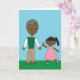 Um avô negro recebe uma flor de sua neta afro-americana no cartão de Dia dos Avós. O texto do dentro diz, "Obrigados por me ajudar a crescer na pessoa que sou hoje! Feliz Dia dos Avós da sua neta.", mas pode ser mudado e personalizado para ajustado das suas necessidades!
