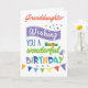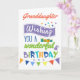 Desejar a sua neta um aniversário maravilhoso em estilo. Este cartão brilhante e colorido é adequado para uma grande variedade de idades. Apresenta uma tipografia fofa numa mistura de cores azuis, roxas e verdes. Pequenos presentes, caninos e estrelas somam à comemoração de aniversário. O nome e a mensagem podem ser alterados.