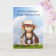 Celebre o dia especial do seu neto com este cartão de aniversário divertido baseado no beisebol! Um macaco brincalhão fica na grama, pronto para o jogo com um taco, uma luva, e uma bola de beisebol perto. O céu azul brilhante acrescenta à sensação alegre, fazer esta é uma escolha excelente para qualquer neto que ama beisebol. Com a mensagem enérgica "Batter Up, It's Your Birthday Time!", este cartão é perfeito para adolescentes e adolescentes que adoram esportes e aventuras. Diga-lhe que ele é um jogador de estrelas no seu coração no seu grande dia!