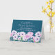 Parabéns no cartão de graduação para neta com lindas flores azul e roxa turquesa, e verso sentimental.
