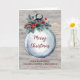 Feliz Natal para a neta e sua carta de família com enfeites de natal de cor da água rústica e bagas sagradas e padrão de madeira vintage.