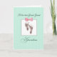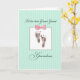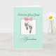 Este cartão com pegadas de bebê e um arco cor-de-rosa na frente é perfeito demais para felicitar uma nova avó excelente que acabou de ter uma nova neta excelente excelente.