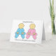 Bebês gêmeos de desenho animado, um rapaz e uma rapariga, com as palavras "Parabéns, és um Avô para gêmeos". A imagem tem um fundo branco nítido.