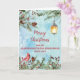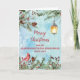 Feliz Natal para neta e marido com folhagem verde de aquarela, uma lanterna cardeal e rústica e verso pensativo.