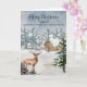 Feliz Natal para a neta e o cartão do marido com neve rústica cobriram cabana na floresta e verso pensativo.