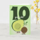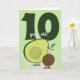 Um cartão de aniversário com um tema de abacate. A design mostra um sorridente personagem de abacate e abacate com uma idade de aniversário personalizável em verde. Dentro, o cartão diz "Feliz Aniversário, Nome". As palavras podem ser alteradas e personalizadas.