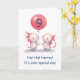 Comemore um aniversário especial de 9 anos com este cartão adorável com dois axolotls cor-de-rosa. Um axolotl segura um balão rosa com o número 9, pronto para compartilhá-lo. A mensagem alegre na frente lê, "Dica! Dica! Viva! É o seu dia especial!" Dentro, a saudação continua com um desejo encantador: "Espero que seu 9º aniversário seja um salto! Mergulhe na diversão e aventura, porque alguém tão incrível quanto você merece o melhor!" Perfeito para qualquer jovem amante do oceano, esta carta certamente trará um sorriso e tornará seu dia ainda mais memorável.