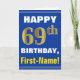 Cartão Azul, Azul, Faux Dourado 69º Aniversário com Cartã