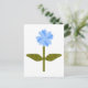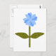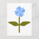 Este cartão postal bonito apresenta uma imagem digital de uma margarida com um tronco verde com duas folhas verdes sobre ele e pétalas claras e azuis escuras. Esta é uma design simples, mas bonita. O fundo é branco.