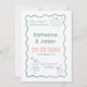 Um design alegre e caprichoso de doodle para salvar a data do casamento. A cor básica é azul, o monograma da noiva e do noivo também está incluído no elemento do rótulo da garrafa. Por favor, personalize todo o texto.