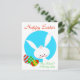 Cartão azul coelho felz pascoa