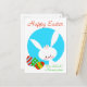 Cartão-postal de Páscoa giro com coelho/ coelho branco cercado por um círculo azul com ovos coloridos de Páscoa pretos no canto. Um fabuloso feriado de Primavera desenhado para celebrar os feriados religiosos. Excelente para que os grupos da igreja e as escolas entreguem aos filhos. Personalize adicionando o nome do jardim de infância / pré-escola / Enfermeiro ou grupo de igreja e depois personalizado com uma mensagem no verso.
