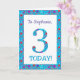 Cartão Azul com placa frontal Bonito de aniversário de 3