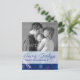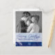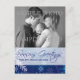 Cartão azul do floco de neve dos cumprimentos das estações com foto de família. Use os suportes do lugar do modelo para adicionar sua própria imagem e para adicioná-lo nomes.