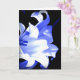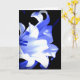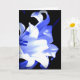 Dois lírios brancos/azuis brilham contra o fundo preto na frente. O dentro diz: "Feliz Aniversário! em roteiro lúdico.. Isto pode ser mudado de acordo com a sua ocasião... pode se tornar um cartão de compaixão, um novo cartão de bebê, um cartões de agradecimentos.
