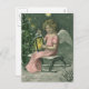 Na moda, pintura colorida de cheio de uma pequena cherub em um vestido cor-de-rosa com suas asas brancas como neve, parecendo caprichosa e adorável, sentada sobre um trenó em um cenário azul de inverno. Limpo para decorar qualquer item de forma na moda e moderna. Adicione seu próprio texto a esta bela imagem de Natal vitoriana se você quiser ou simplesmente desfrutar da detalhada arte colorida da criatura mítica.