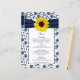 Você pode personalizar o texto deste elegante marinho de girassol ou do casamento floral azul e branco, ou do cardápio especial. Para alterar o texto, use a opção personalizar. Para alterações mais abrangentes no menu, incluindo alterações na fonte, tamanhos de fonte, cor de fonte ou posicionamento de texto, use a opção personalizar. Uma escolha bonita e clássica para um casamento no outono ou verão ou qualquer outra ocasião especial como aposentadoria, aniversário ou festa de aniversário. Azul, amarelo e branco sofisticados de marinho é sempre uma escolha na moda. Os girassóis acrescentam uma sensação de sol.