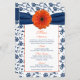 Você pode personalizar o texto neste elegante casamento de gerbera laranja (margarida gerber) azul ou azul marinho e branco damasco floral e friso ou cartão de menus especial. Para alterar o texto, use a opção personalizar. Para alterações mais abrangentes no menu, incluindo alterações na fonte, tamanhos de fonte, cor de fonte ou posicionamento de texto, use a opção personalizar. Uma escolha bonita e clássica para um casamento no outono/outono ou verão ou qualquer outra ocasião especial como aposentadoria, aniversário ou festa de aniversário.