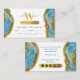 Um desenho abstrato de tinta azul-aquática mácula de cor dourada. Este elegante design de mármore líquido que combina tons dourados cria uma sofisticada peça de abstrato. Uma maneira simples e profissional de apresentar seu negócio. Ícones das mídias sociais incluídos na design deste cartão de visita para você usar. Um cartão de fidelidade à folha de ouro de mármore azul ideal / design de cartão de visita para um salão de beleza, cabeleireiro cabeleireiro, maquiador, cosmetólogo etc. Personalize seus detalhes para criar seu próprio cartão de visita exclusivo.