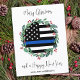 Mande saudações de Feliz Natal a amigos e familiares com este Cartão Único de Natal da Polícia de Linha Azul - Feriado em uma design de bandeira americana em cores da Polícia, design preto e branco moderno com santo e bagas. Personalize com o nome da família. Este cartão de Natal da polícia é perfeito para famílias da polícia ou cartões de natal do departamento de polícia. COPYRIGHT © 2022 Judy Burrows, Black Dog Art - Todos Os Direitos Reservados. Cartão Azul de Férias de Natal da Polícia
