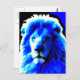 O Rei da Selva. Um impressão de tela retrógrada inspirou uma parte próxima da cabeça de leão em cores marcantes - azul, preto e branco. Cartão postal com um design personalizável para personalizar com seu próprio texto, imagens e ideias. Criado com fotografias originais e efeitos digitais por Jess Perry.