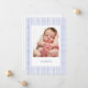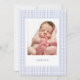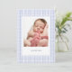 Um clássico cartão de anúncio de nascimento de um bebê gingham azul com uma grande foto de seus detalhes personalizados, recém-nascidos e elegantes. Perfeito para compartilhar a alegria da chegada do seu bebê com amigos e família, este design eterno combina uma borda suave com tipografia limpa. Ideal para enviar e-mails, manter registros ou anúncios digitais.