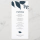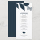 Este modelo de cardápio moderno faz parte da coleção de convites de luxo do Do Diga A Belle. A design apresenta folhas simples em azul-da-meia-noite. Personalize-os com itens de menu, nomes e data do evento. Perfeito para casamentos noturnos, chá de panela, jantadas de ensaio ou o que você quiser. Uma elegante e botânica escolha para casamentos noturnos. Para ver mais designs azuis marinhos como este, visite www.zazzle.com/vginvites