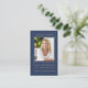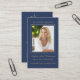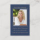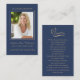 Cartão de visita Dimensões: modelo de placa de oração simples de 3,54" x 2,165" com uma tipografia elegante em dourado sobre um fundo azul clássico. Personalize com sua foto favorita do seu amado, nome e data. Design na parte traseira da placa é um elegante coração dourado e uma mensagem pessoal que pode ser personalizada para ajustado de suas necessidades exclusivas.