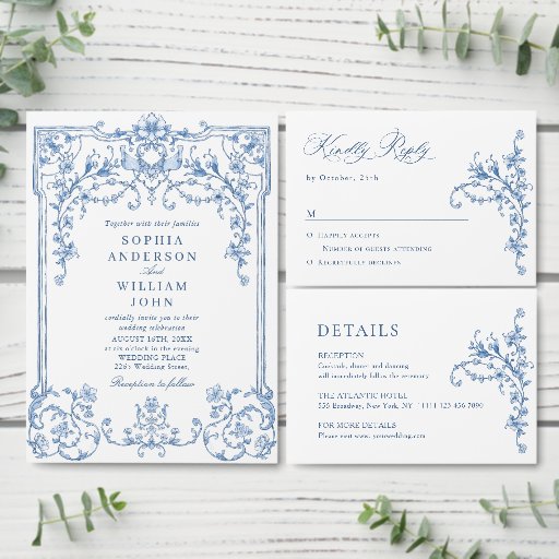 Cartão Azul De Sentagem De Casamento Vitoriano