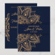 Cartão Azul Dourado de Casamento de Luxo
