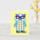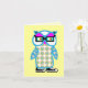 A coruja azul engraçada do hipster que vestem vidros, as sapatilhas e o vestido maxi da flor anulam o presente do cartão para mulheres, meninas femininos, adolescentes, miúdos, estudantes universitários, hipsteres & pessoas que como corujas cor-de-rosa de zazzle.com/customizecoolartcard*.