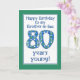 Um cartão de aniversário de 80 de na moda para um cunhado, com o número 80 feito de uma colagem de papel pintada à mão, em azul, verde e branco, em coordenação com a inscrição e a borda do cartão. Não se esqueça de que você pode personalizar facilmente o dentro deste Cartão de Aniversário 80.