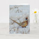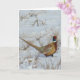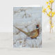 Placa de faisão com anel. De longe os pássaros mais bonitos do planalto, o faisão com pescoço de anel masculino quase brilha nesse fundo de neve. Os dourados e castanhais sobre o corpo contrastam lindamente com o verde vermelho, branco e iridescente da cabeça.