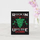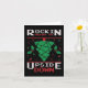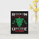 Uma árvore de Natal que está de cabeça para baixo com as palavras balançando em volta da cabeça para baixo. Este design parece realmente eficaz nestes Cartão de Boas Festas
