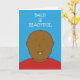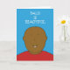 Um desenho de um homem sorridente, acompanhado das palavras 'Bald é lindo'. A imagem tem um fundo azul brilhante colorido.