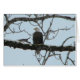 Uma águia careca estourou num galho coberto de neve de uma árvore de algodão; Sandpoint, ID.