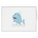 Uma baleia azul saltando da água. Personagem de desenho animado.