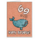 Baleia do feliz aniversario - 69 anos de baleia de humpback bonito velha em um cartão específico à idade do aniversário. Texto interno: "Esperança você tem uma baleia de um momento!"