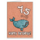 Baleia do feliz aniversario - 75 anos de baleia de humpback bonito velha em um cartão específico à idade do aniversário. Texto interno: "Esperança você tem uma baleia de um momento!"