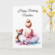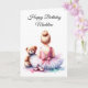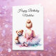 Pequena bailarina loira em cartão de aniversário cor-de-rosa para filha ou neta. Você pode adicionar o nome dela na área de personalização. Bonito para qualquer menina.