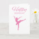 Cartão de aniversário clássico com uma silhueta cor-de-rosa de bailarina com o texto "Feliz Aniversário" - excelente para raparigas graciosas que adoram dançar, balé. Você pode editar as cores de todos os elementos de design / dentro de fundo /fora.