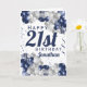 Um marinho lindo e um balão prateado, um cartão de aniversário de 21 anos feliz. Esta design fabulosa é a maneira perfeita de desejar a alguém um feliz aniversário de vinte e um anos (ou qualquer idade!) Personalize com nosso próprio nome e mensagem personalizados. Tipografia azul e belos balões azuis e prateados marinhos.