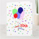 Uma imagem colorida do aniversário do 70 com balões e confetes. Verso customizável para dentro. Um cumprimento alegre para qualquer um que está girando setenta anos velhos!