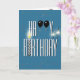 White Happy Birthday texto sobre fundo azul com balões negros, vela, confete de festas e faíscas. A cor de fundo pode ser alterada.