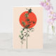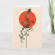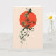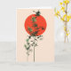 Um caule casal de bambu verde com folhas em pé contra um sol ascensão vermelho, sobre um pergaminho pálido e bronzeado faz um belo cartão de aniversário com tema asiático.